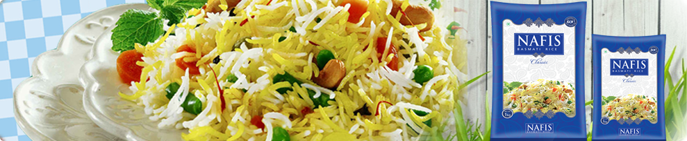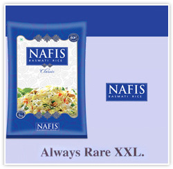 Nafis Basmati Rice is a unique creation from the Rice Engineers of R H Agro Overseas, Nafis Basmati Rice is unique with its fine XXL pearl white grains which grow more than two and half times of the grain size after cooking without any breakage and also don't stick together. Total production process of this premium quality rice is totally untouched by the hand in state of art plant.